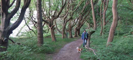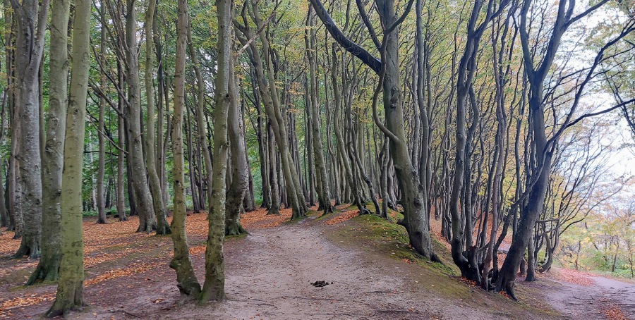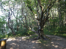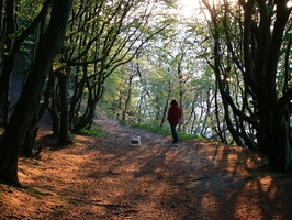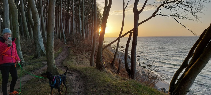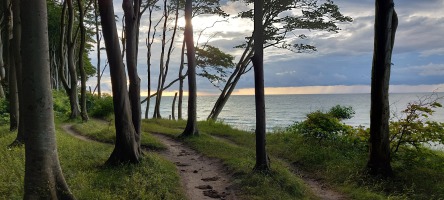 Wer den Weg über die Steine scheut, biegt an der Müllerschlucht links ab und folgt der Steilküste bis zu einer Treppe, die ihn direkt zum puderfeinen Nordstrand führt. Diesen Weg empfehlen wir auch Radfahrern. Er führt sie durch den Küstenwald. Hier hat der stetige Seewind die Weißbuchen in den bizarrsten Formen wachsen lassen. Einheimische nennen dieses Waldstück den Feenwald. Hier können Sie herrliche Sonnenuntergänge erleben.